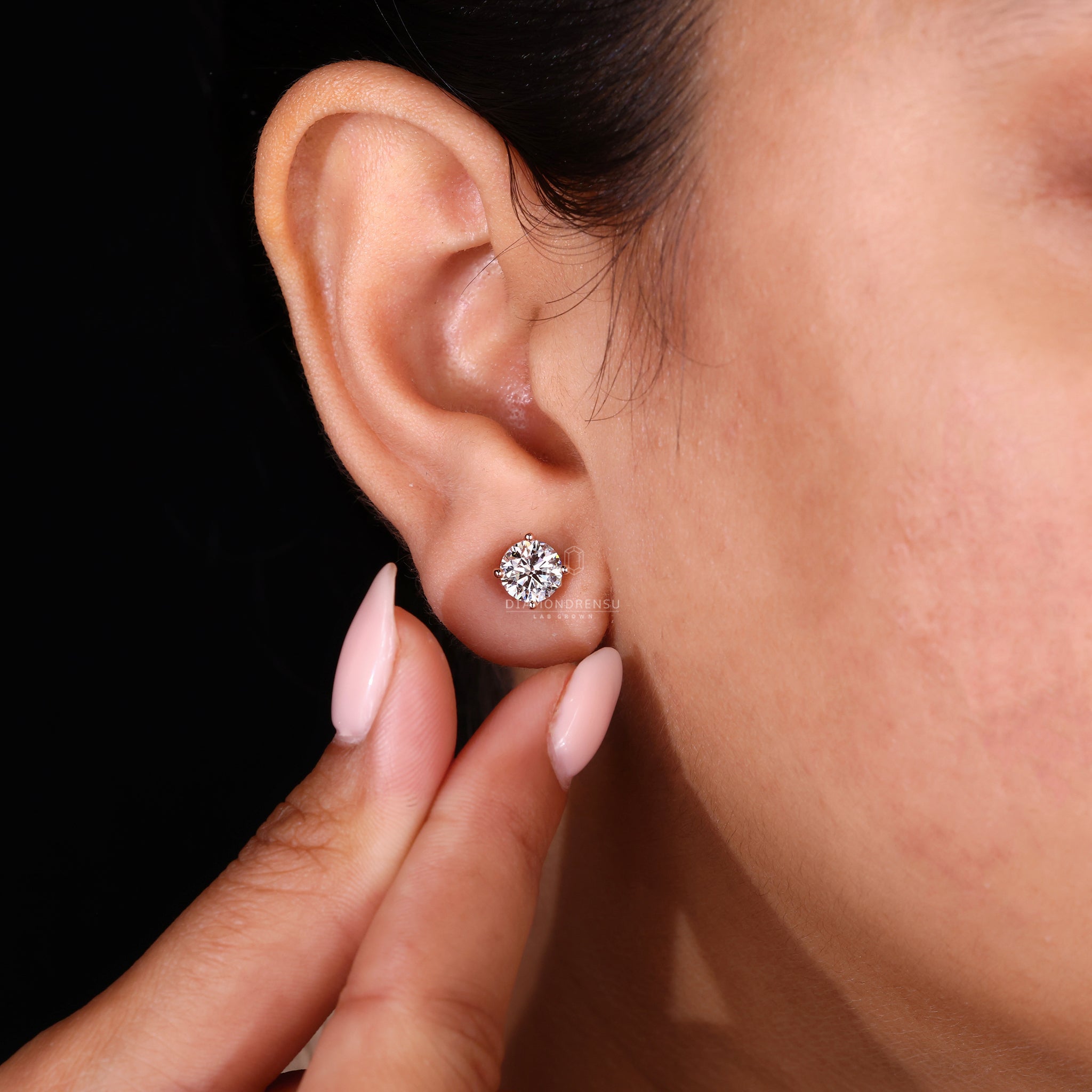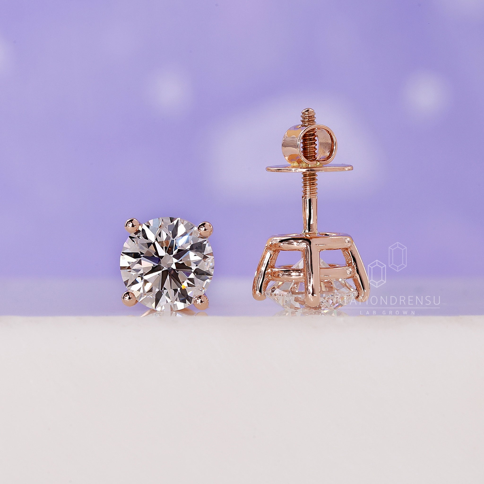 While, the round diamond stud earrings style fits almost every occasion. Plus, the warm tone of rose gold earrings gives the set a soft and natural glow. With a secure 4 prong setting, there’s no need to worry about movement or damage.