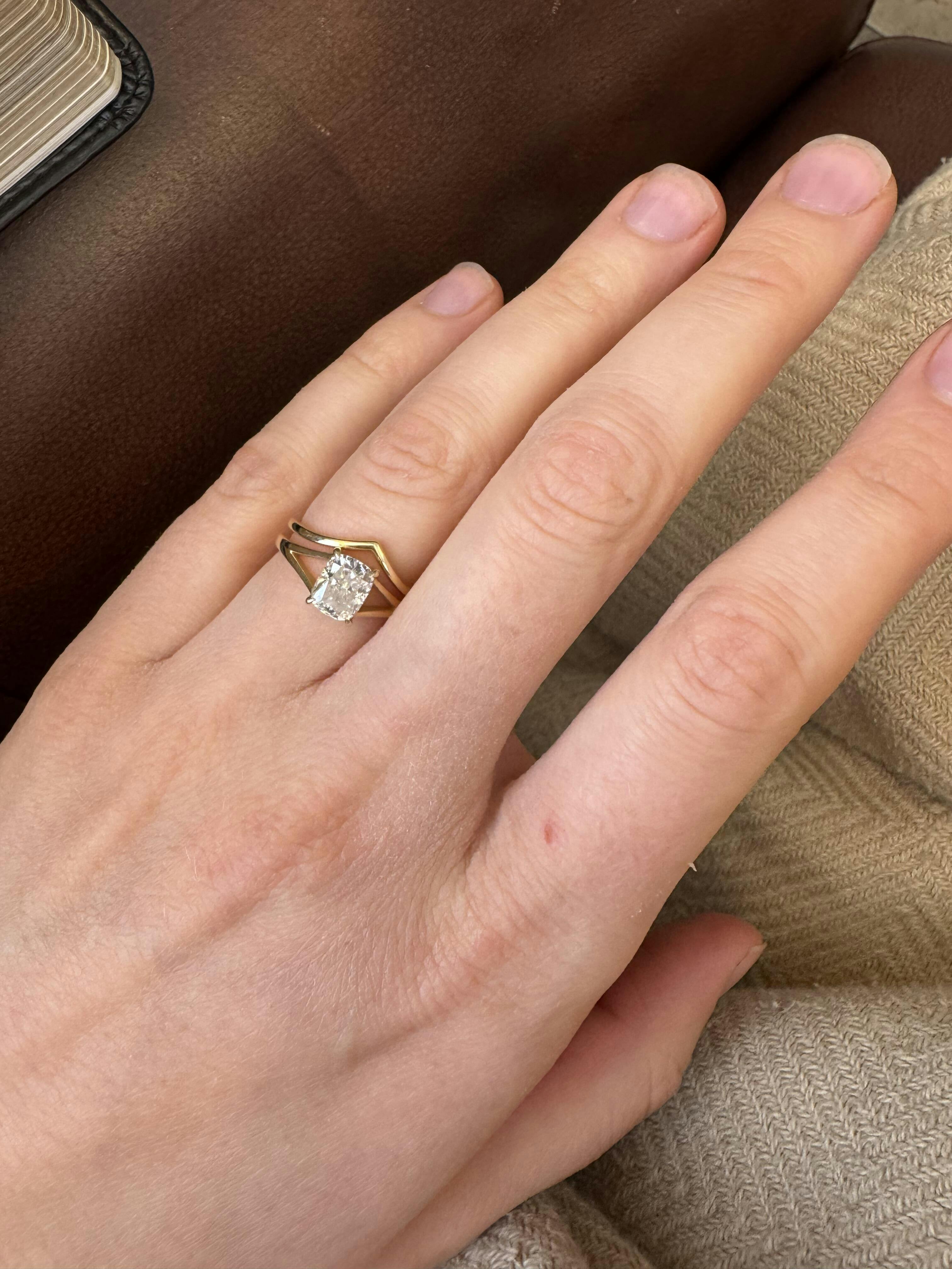 - Elongated Cushion Cut Diamond: The elongated cushion engagement ring showcases a diamond with exceptional clarity and sparkle.